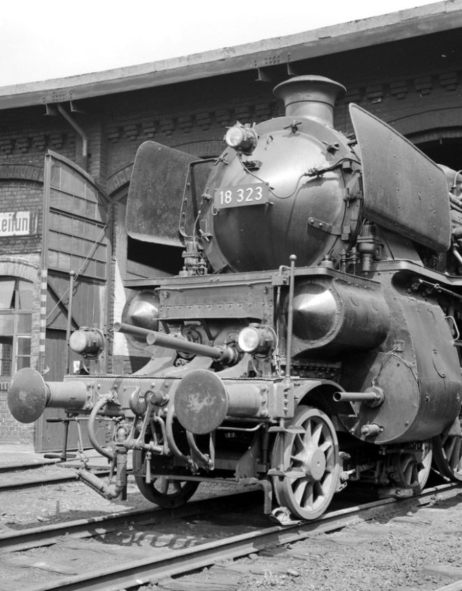 Die 18 323 steht 1965 in Bebra und wartet auf ihre nächste Aufgabe. Copyright: Joachim Claus / Slg. Eisenbahnstiftung