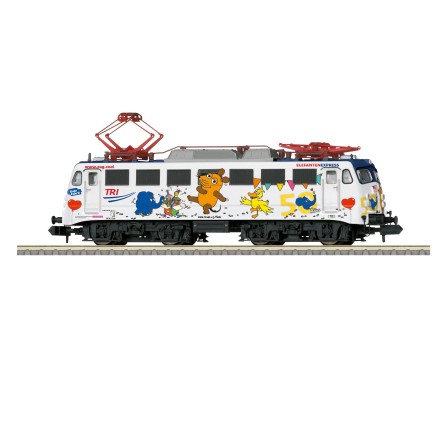 Zum 25. Jubiläum der "Sendung mit der Maus" fuhr im Frühjahr 1996 der "Mausexpress" mit 100 487 der DB AG für ca. 6 Wochen von Stadt zu Stadt. Märklin brachte bereits damals die Modelle in den Nenngrößen H0 und Z. (TRIX / MINITRIX gehörten damals noch nicht zum Unternehmen)