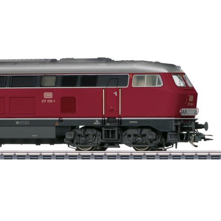 Sie ist quasi die Schwester der BR 218 und stellt einen Zwischenschritt der Entwicklung der V160-Lokfamilie dar. Das Modell zeigt sich in der Ursprungslackierung, beschriftet im Zustand der frühen 1970er Jahre als 217 018-1