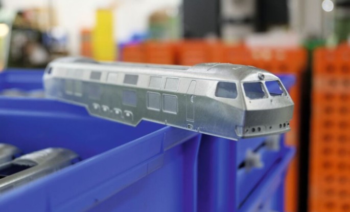 Das noch "rohe" Metallgehäuse einer Diesellok der Baureihe V320