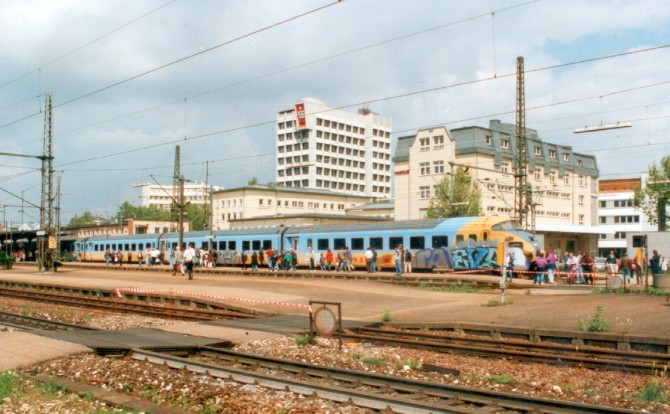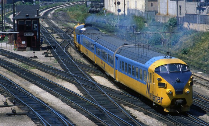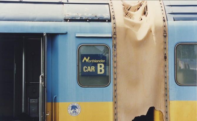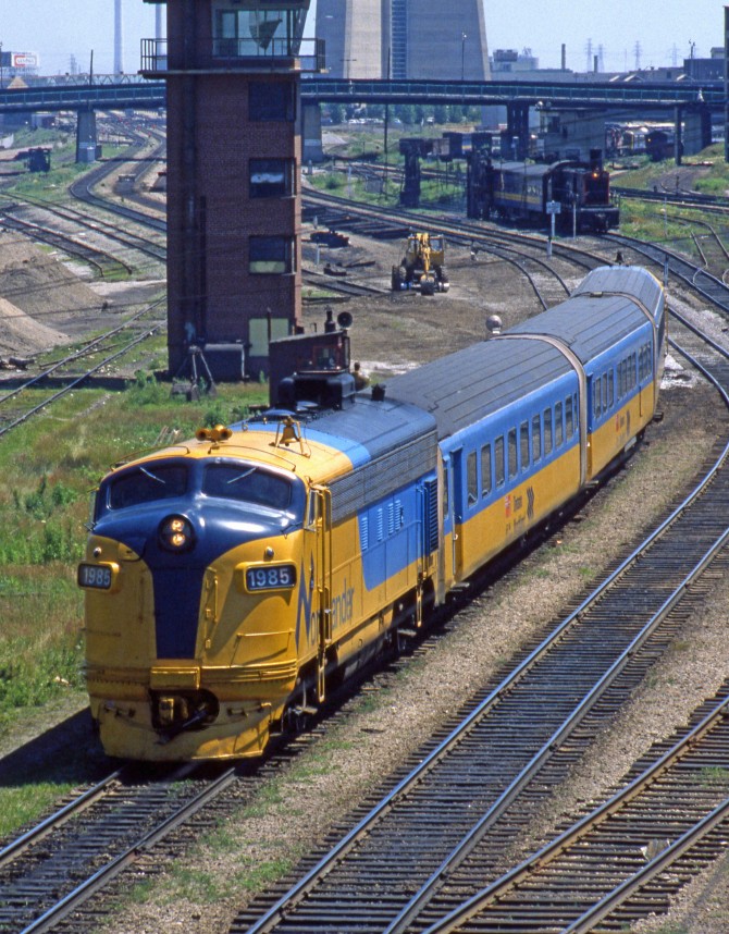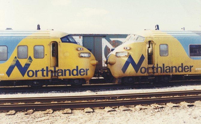 Schon ohne Betriebsnummer zeigen sich die Steuer- und Mittelwagen 1997 in Kanada. Die Motorwagen sind leider schon längst verschrottet. copyright: Sammlung Märklin